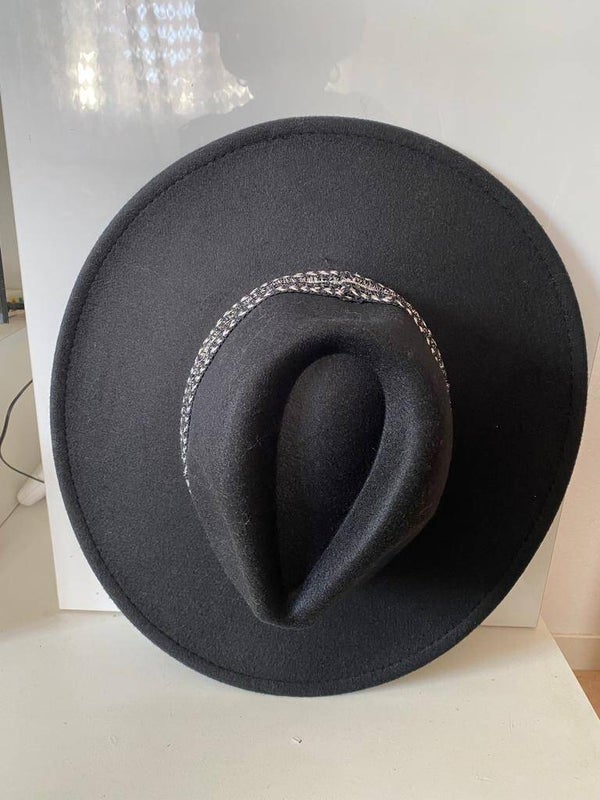 Chapeau cowgirl noir, personnalisé en tissus strassé.