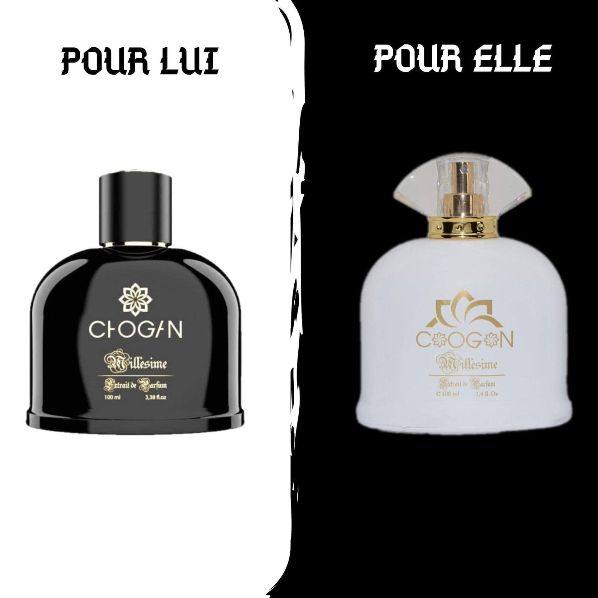 Parfum #Chogan# inspiré des grandes marques, la couleur noire c'est pour les hommes et blanche pour les femmes.