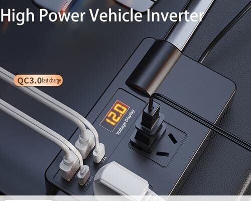 Adaptateur de Prise de Voiture - Inverseur de Puissance 2000W, chargeur inverseur de voiture pour travail de bureau en voiture, camping, voyage sur autoroute