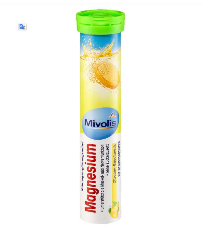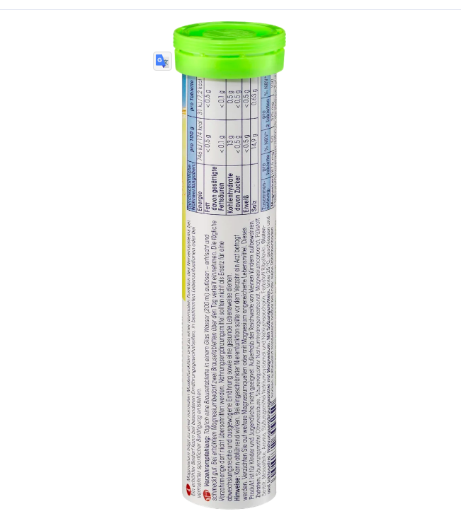 Description exacte du produit : Complément alimentaire au magnésium. Avec édulcorants. Acidifiant : acide citrique, correcteur d’acidité : bicarbonate de sodium, carbonate de magnésium, édulcorant : sorbitol, amidon de maïs, arôme, édulcorants : cyclamate de sodium et saccharine sodique, colorant : riboflavine.