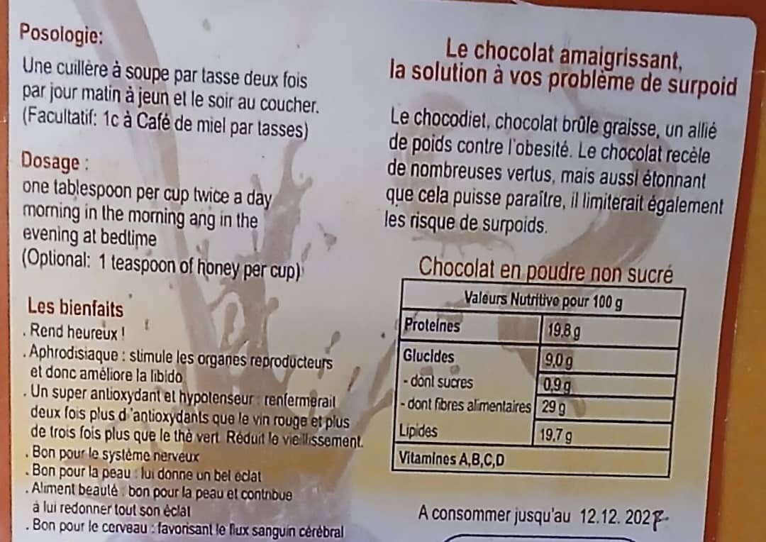 le chocodiet - le chocolat amaigrissannt - Produit d'afrique
