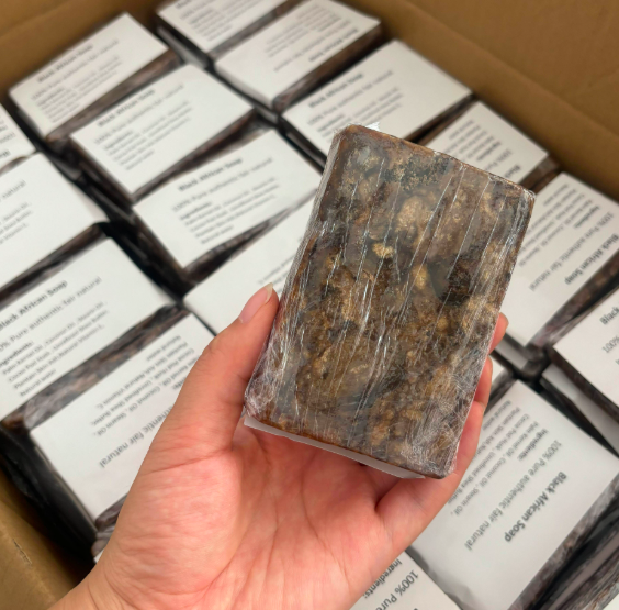 Meilleur Savon Noir Africain Bio Brut Fait Main Anti-Acné, Taches Brunes, Peau Sèche, Points Noirs et Boutons, Blanchissant 100g